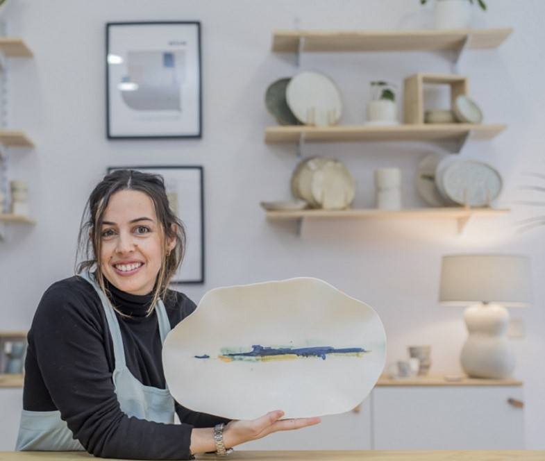 Carmen, y ahora su hija Gabriela, promueven una actividad dedicada a la pintura artesanal sobre vajillas de diferentes materiales, como porcelana, loza, gres y cristal.